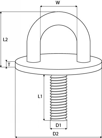Pontet sur platine ronde avec tige filetée - Inox A2
