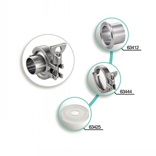 63499 RACCORD CLAMP ISO COMPLET COLLIER SIMPLE ARTICULATION JOINT SILICONE Inox 316L
