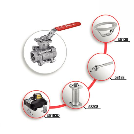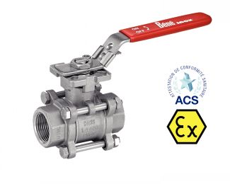 58183 VANNE 3 PIÈCES ATEX FEMELLE / FEMELLE GAZ AVEC PLATINE ISO 1000 LBS / PN63 - PASSAGE INTÉGRAL - POIGNÉE CADENASSABLE - ACS Inox 316