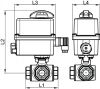 50225 VANNE À BOULE 3 VOIES F/F/F PASSAGE EN T (58217) AVEC ACTIONNEUR ÉLECTRIQUE IP66 180° 3 POSITIONS (50843)