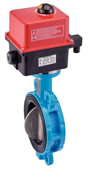 Vanne papillon à oreilles de centrage corps fonte - papillon inox - joint Silicone (58414) avec actionneur électrique IP66 positionneur (50842)