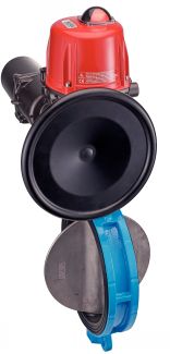 Vanne papillon à oreilles de centrage corps fonte - papillon inox - joint Silicone (58414) avec actionneur électrique IP68 positionneur (50846)