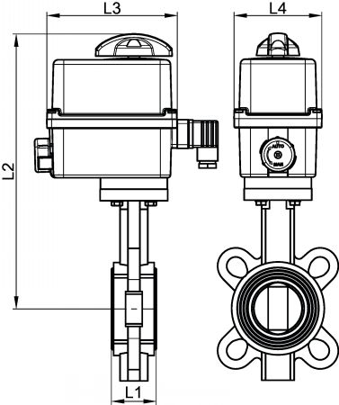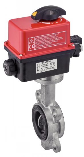 Vanne papillon à oreilles de centrage corps et papillon inox - joint Silicone (58424) avec actionneur électrique IP66 (50840)