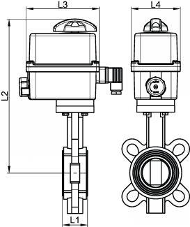 50657 VANNE PAPILLON À OREILLES DE CENTRAGE CORPS ET PAPILLON INOX - JOINT SILICONE AVEC ACTIONNEUR ÉLECTRIQUE IP66 FAILSAFE