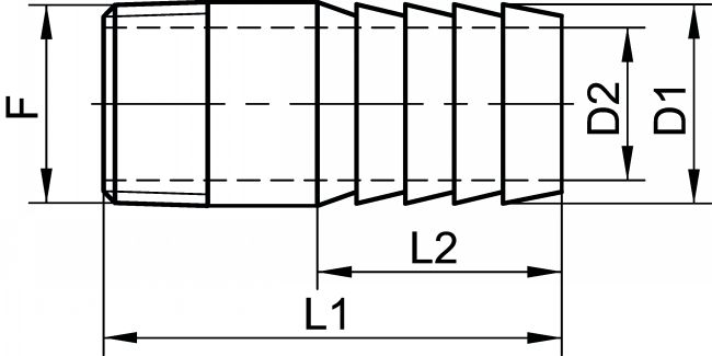 Accueil » Gammes de produits - Béné Inox » Industrie » Accessoires de tuyauterie filetés (Série 52) » Accessoires de tuyauterie cannelés » ADAPTATEUR CYLINDRIQUE MÂLE / CANNELÉ GAZ CONIQUE Inox 316L (Modèle : 5261)