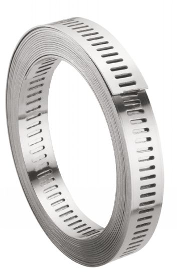 Pour faciliter la fermeture de cette bande perforée en acier inoxydable , nous proposons une fermeture ajustable en inox.