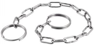Cette chaînette en inox possède 2 anneaux à ses extrémités et a une longueur totale de 330 mm (280 mm hors anneaux).