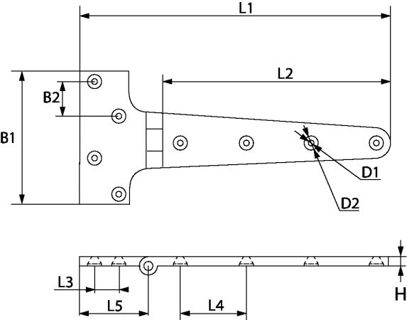432866 CHARNIÈRE MARINE EN T INOX A4
