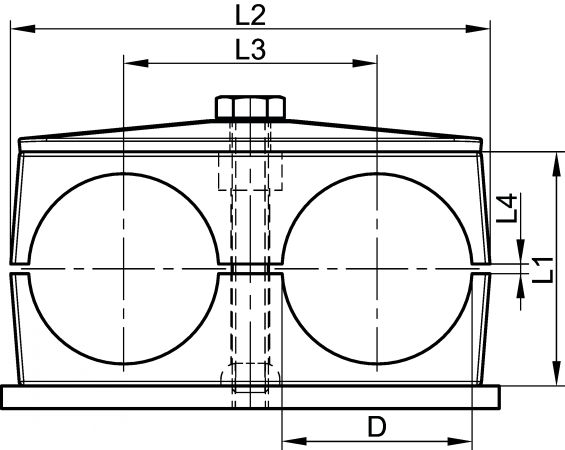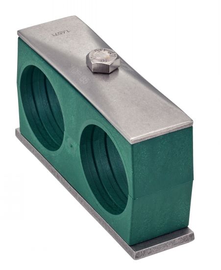 72123 COLLIER POLYPROPYLÈNE DOUBLE CÔTE À CÔTE AVEC PLAQUE INFÉRIEURE À SOUDER ET PLAQUE SUPÉRIEURE DE RENFORT Polypropylène / inox 316
