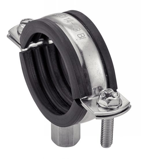 72114 COLLIER SUPPORT DE TUYAUTERIE SÉRIE LÉGÈRE AVEC PROTECTION ANTIVIBRATOIRE EPDM, À VISSER Inox 316 - Acier zingué