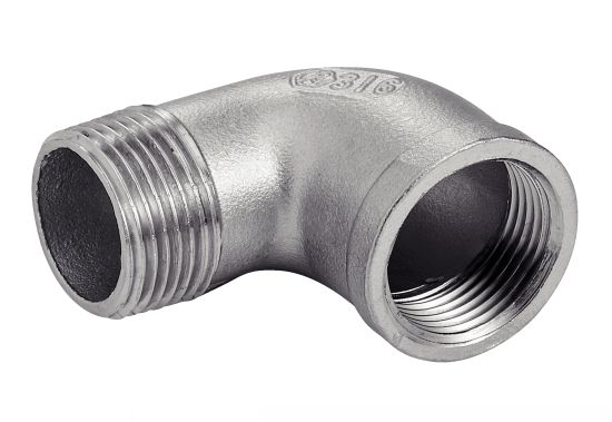 Accueil » Gammes de produits - Béné Inox » Industrie » Accessoires de tuyauterie filetés (Série 52) » Accessoires de tuyauterie filetés » COUDE MÂLE / FEMELLE 90° MÂLE GAZ CONIQUE / FEMELLE GAZ CYLINDRIQUE (OU NPT / NPT) Inox 316 moulé (Modèle : 5246)