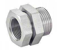 Traversée de cloison - Inox 316L > Diamètres disponibles : du DN8 au DN100- Filetage extérieur Gaz selon ISO 228-1- Filetage intérieur R selon ISO 7-1> Pression nominale de la traversée de cloison :- 20 bar à 20°C- 16 bar à 100°C