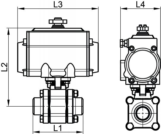 Vanne à boule 3 pièces BW (58472) avec vérin pneumatique inox (50802)