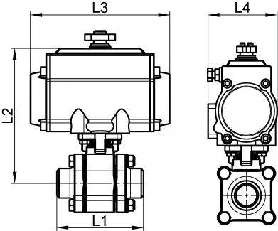 50145 VANNE À BOULE 3 PIÈCES BW (58472) AVEC VÉRIN PNEUMATIQUE INOX (50802)