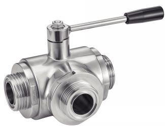 61377 VANNE À BOULE 3 VOIES BOUTS FILETÉS PASSAGE EN T Inox 304 - 316L