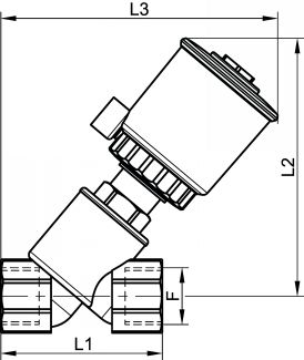 Vanne à siège incliné à commande pneumatique ATEX, taraudage Gaz - Version NF, arrivée sous le clapet - Inox 316
