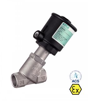 50873 VANNE À SIÈGE INCLINÉ À COMMANDE PNEUMATIQUE ATEX, TARAUDAGE GAZ - VERSION NF, ARRIVÉE SOUS LE CLAPET ACS Inox 316