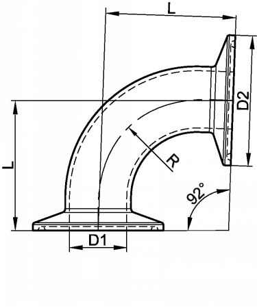 Home » Pharmaceutical & Biotechnology fittings » Pipe accessories » 92° CLAMP BEND - STAINLESS STEEL 316L Inox 316L ASME BPE (Model : 8037)