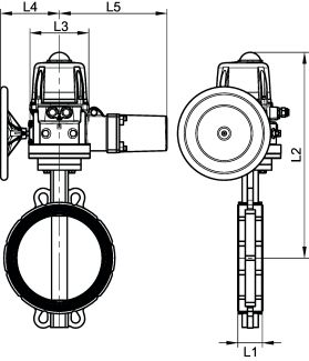 Vanne papillon à oreilles de centrage corps fonte - papillon inox - joint EPDM (58419) avec actionneur électrique IP68 (50844)