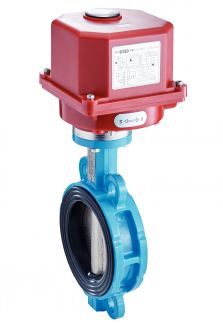 Vanne papillon à oreilles de centrage corps fonte - papillon inox - joint Silicone (58414) avec actionneur électrique IP65 (50835)