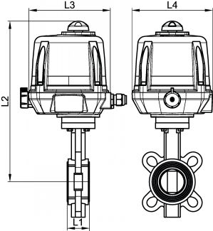 Vanne papillon à oreilles de centrage corps et papillon inox - joint EPDM (58429) avec actionneur électrique IP68 (50844)