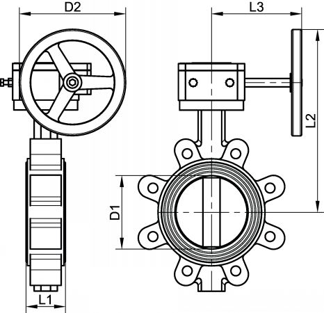 Vanne papillon à oreilles taraudées avec réducteur à volant - Corps fonte GJS500-7 - Papillon inox CF8M - Joint EPDM ACS