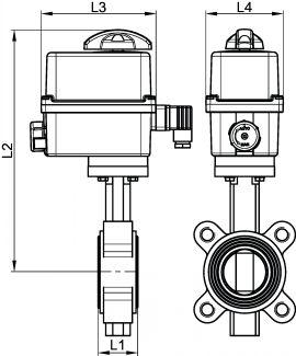 Vanne papillon à oreilles taraudées corps fonte - papillon inox - joint NBR (58452) avec actionneur électrique IP66 Failsafe (50841)
