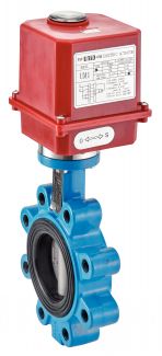 Vanne papillon à oreilles taraudées corps fonte - papillon inox - joint Silicone (58454) avec actionneur électrique IP65 (50835)